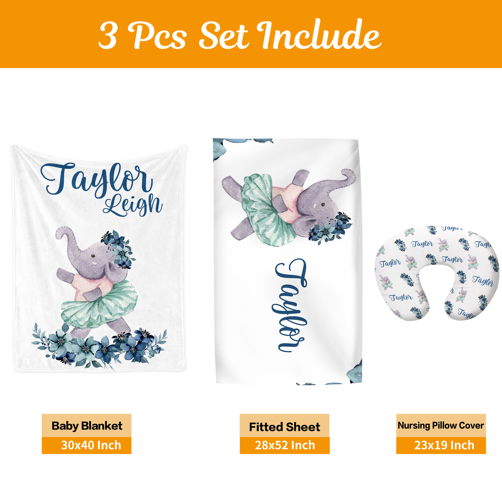 Floral Animal Elephant Baby Bedding 3 Piece Crib Bedding Set | BS095