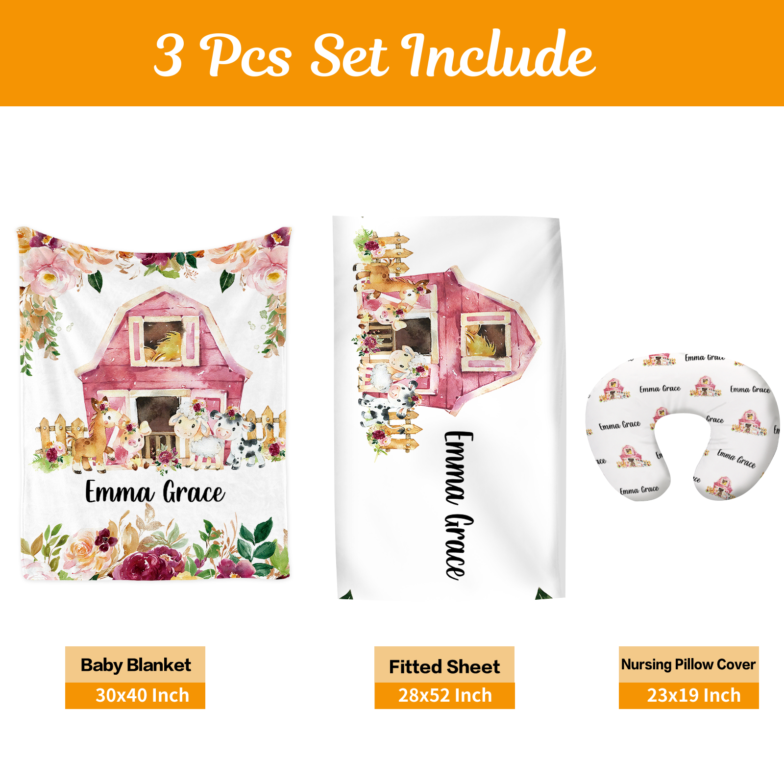Custom Name Animals Baby Bedding 3 Piece Crib Bedding Set | BS109