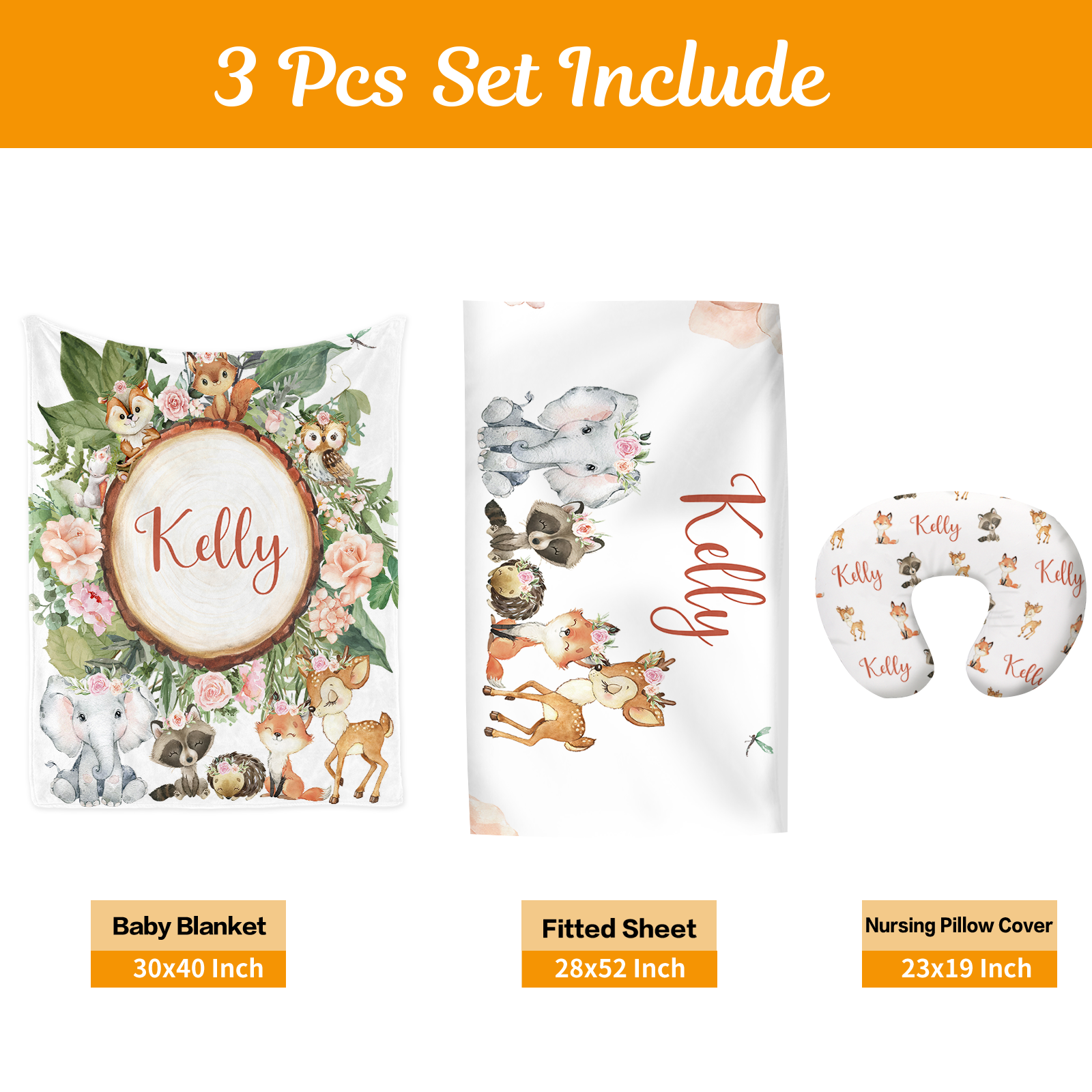 Custom Name Forest Animals Baby Bedding 3 Piece Crib Bedding Set | BS110