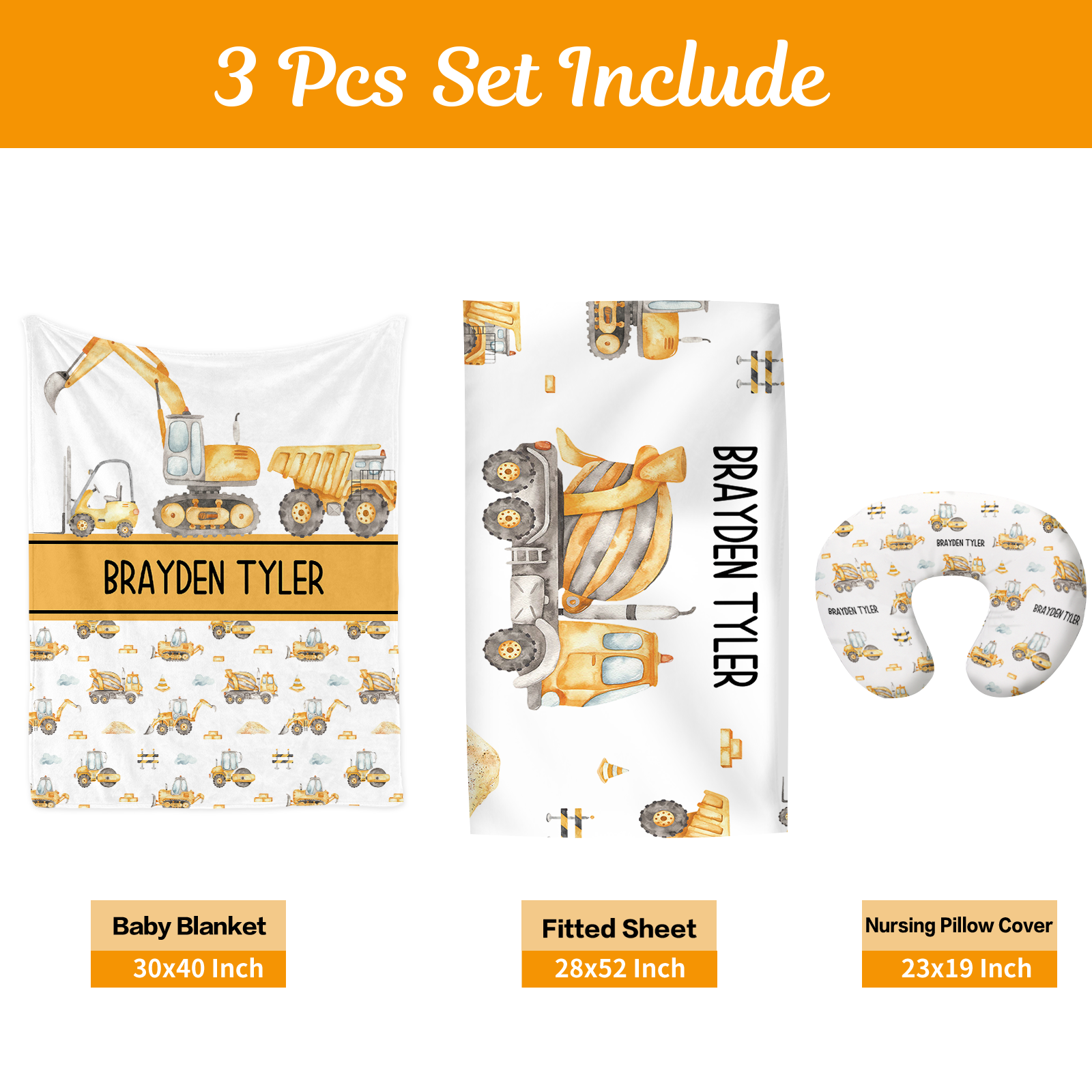 Custom Name Mechanical Vehicle Baby Bedding 3 Piece Crib Bedding Set | BS118