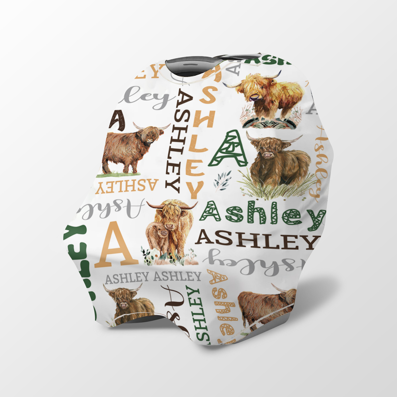 Personalized Baby Car Seat Cover Highland Cover Gift for Baby Girl Boy CO10