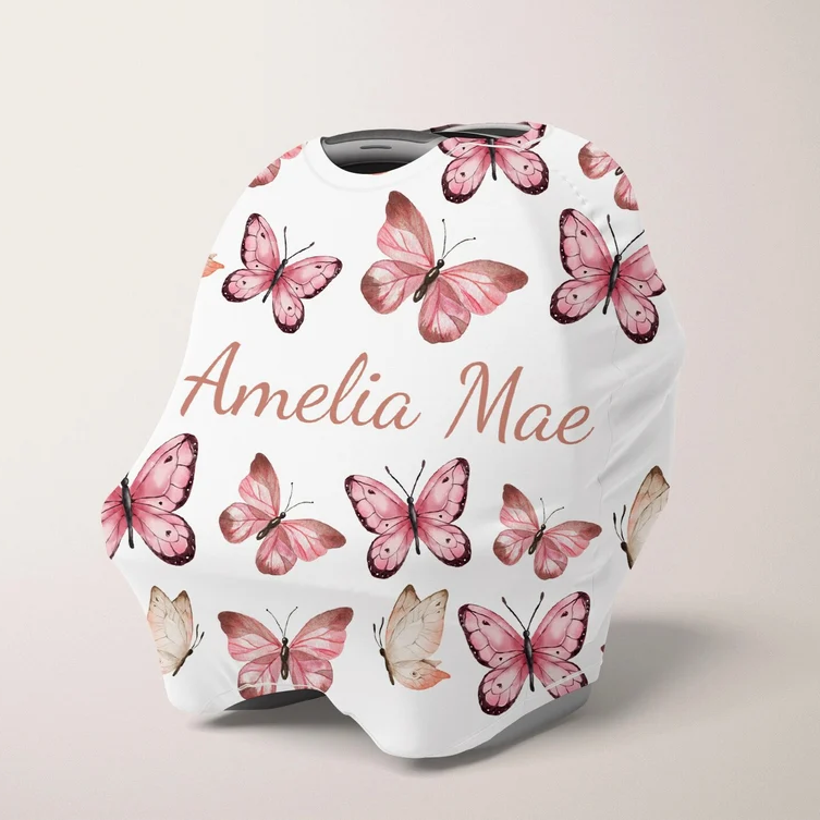 Personalized Pink Butterfly Car Seat Cover Baby Shower Gift