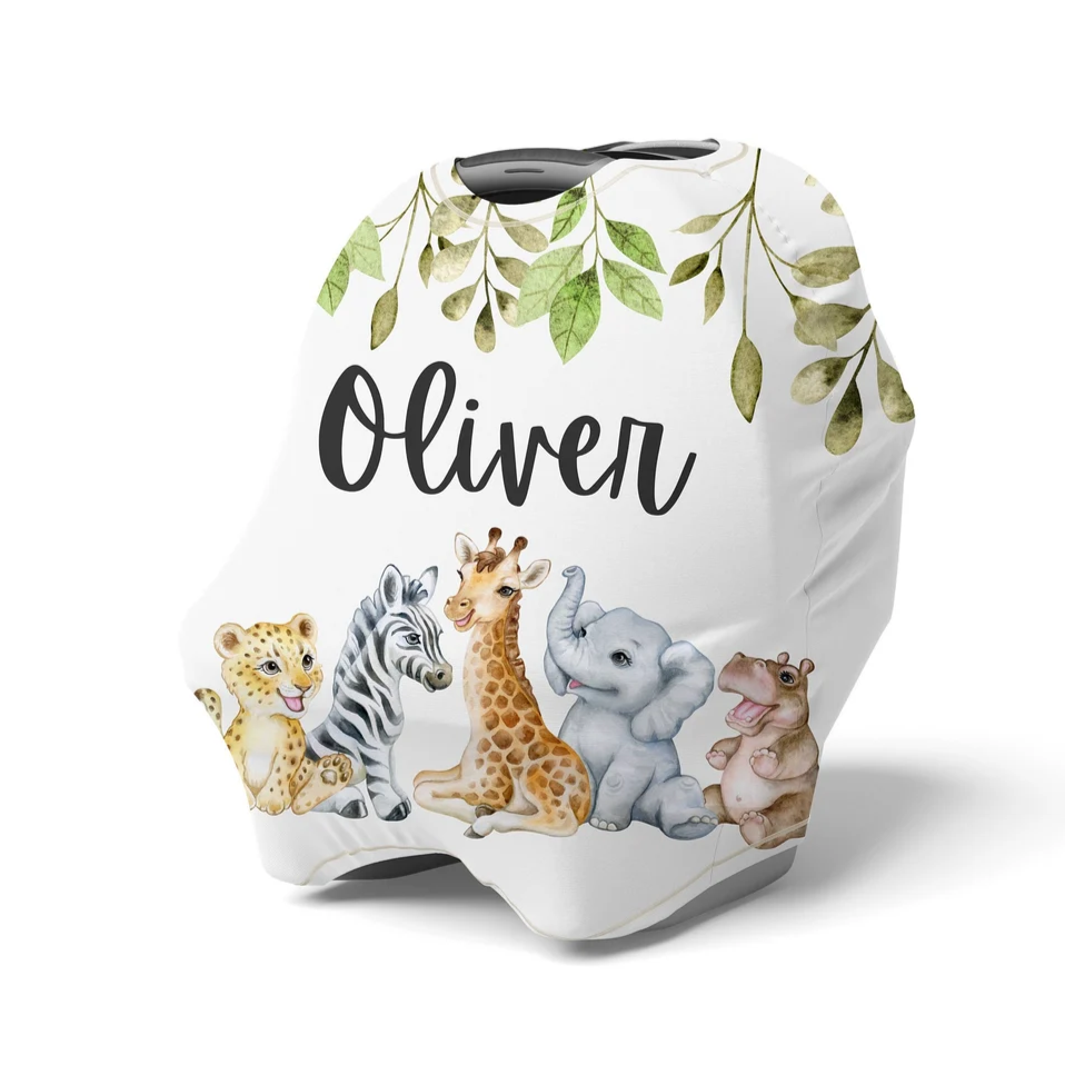 Personalized Safari Animal Car Seat Cover, Custom Stretchy Multi Use Cover