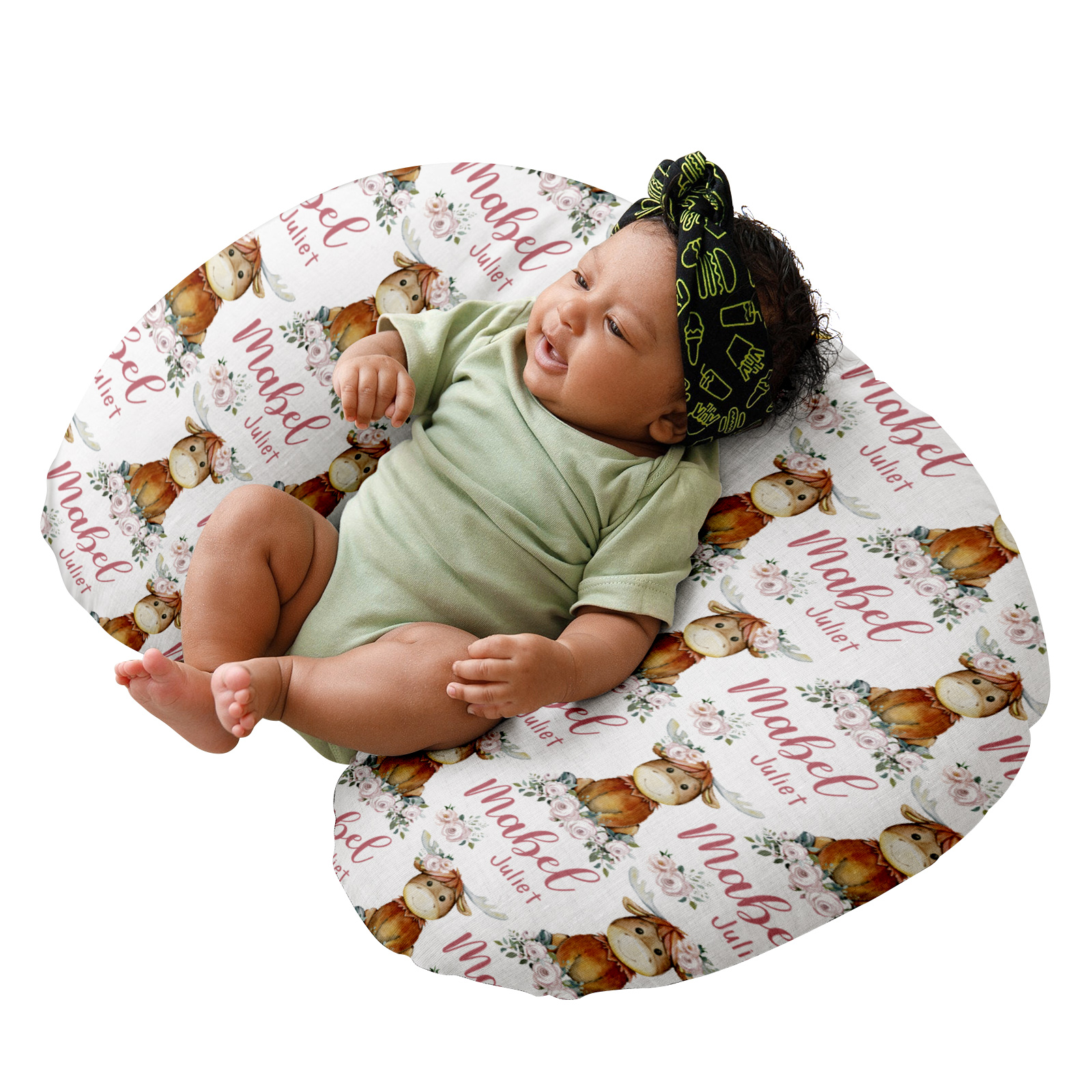 Pink Floral Moose Nursing Pillow, Custom Breastfeeding Bottle Pillow