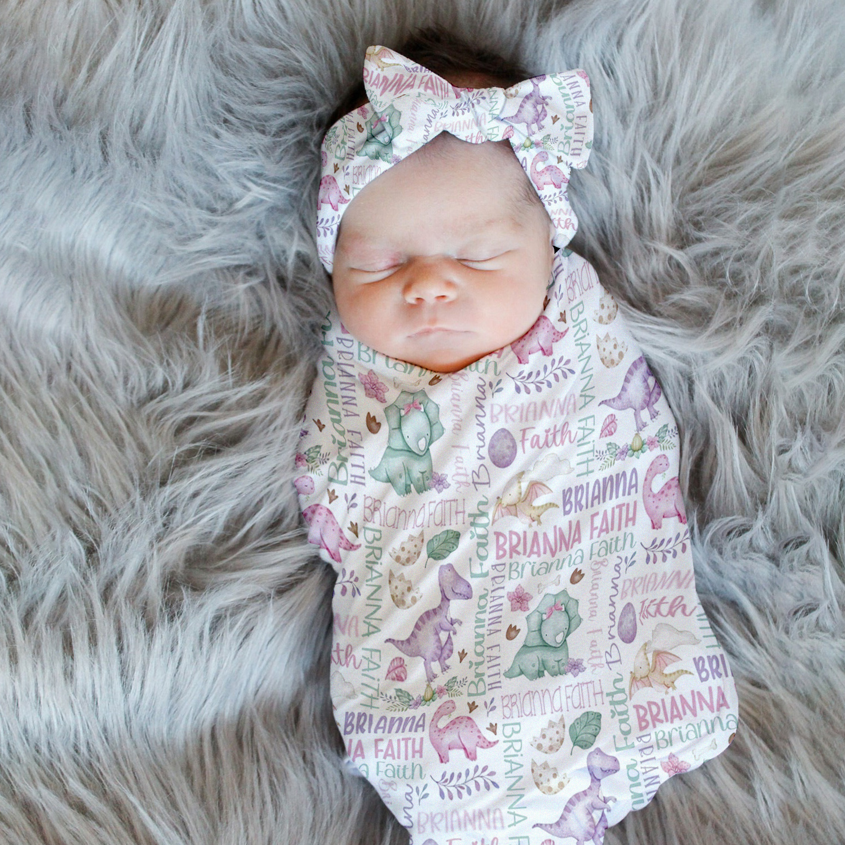 Baby Girl Dinosaur Swaddle Set, Pink Purple Dinosaurs Blanket