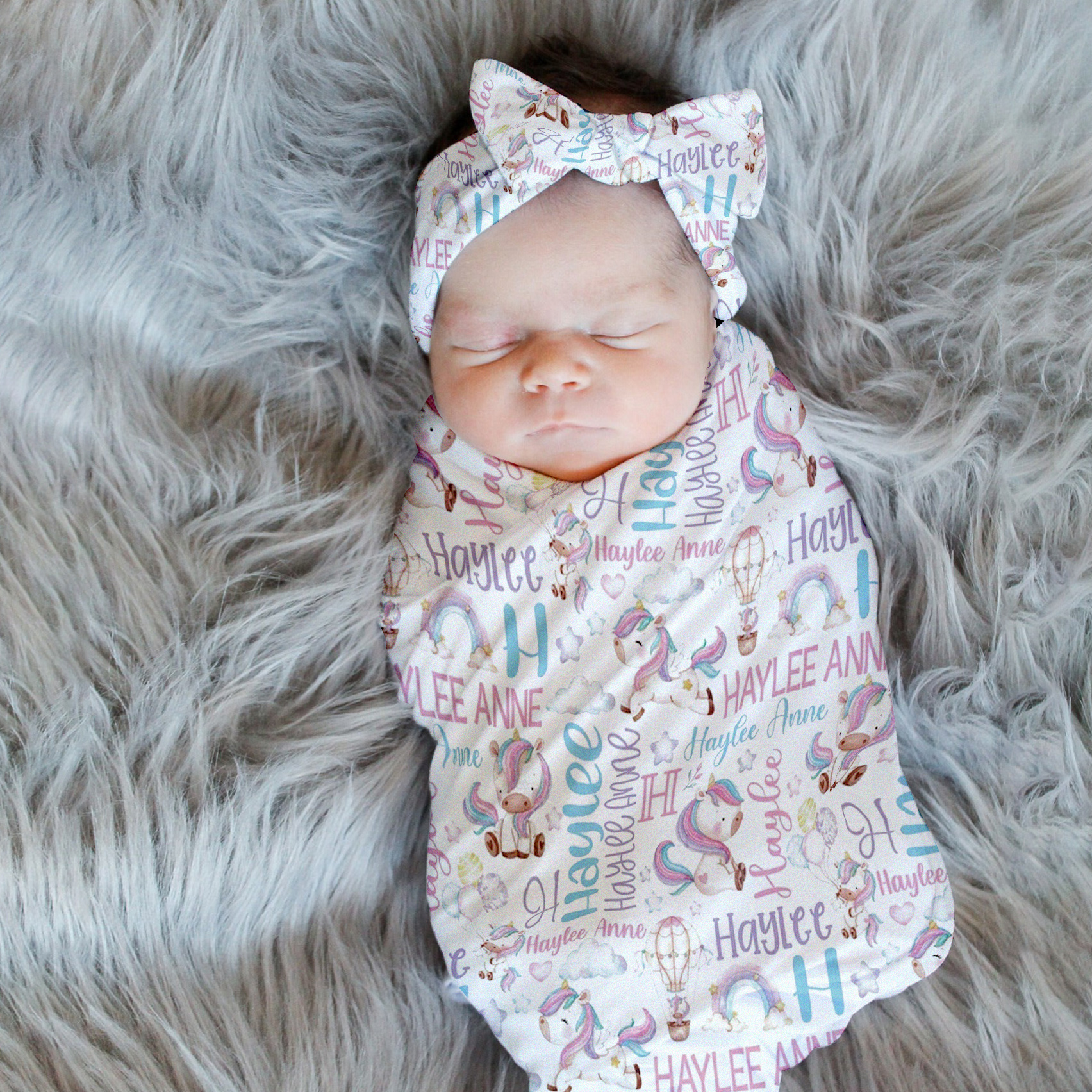 Rainbow Unicorn Swaddle Set, Personalized Baby Blanket