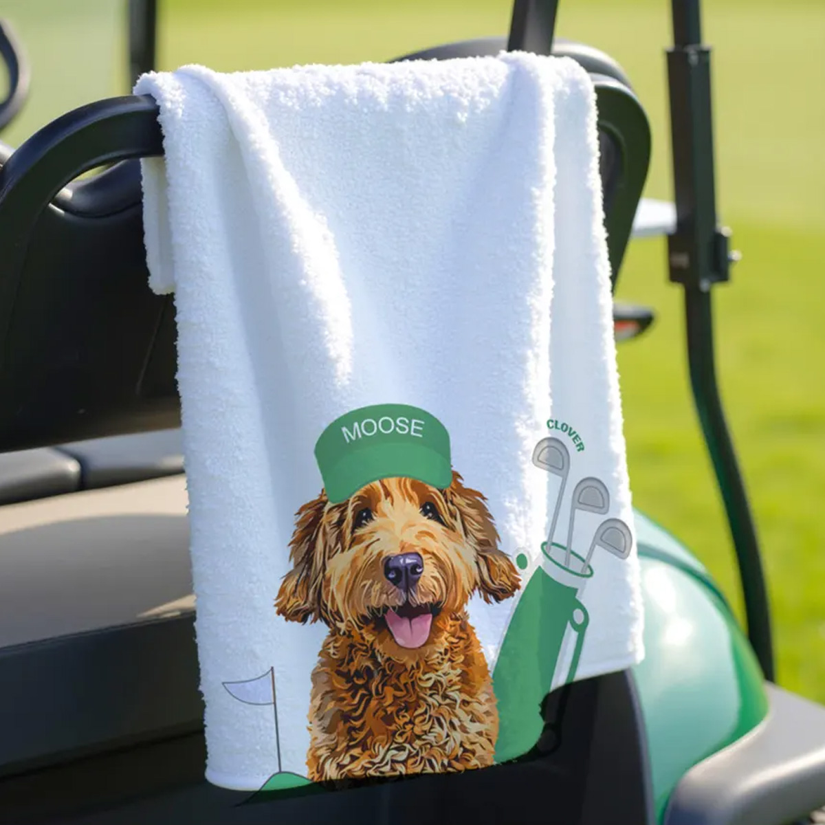 This custom pet golf towel combines practicality with personality. Whether for yourself or as a gift, it adds a meaningful and playful touch to every round of golf.