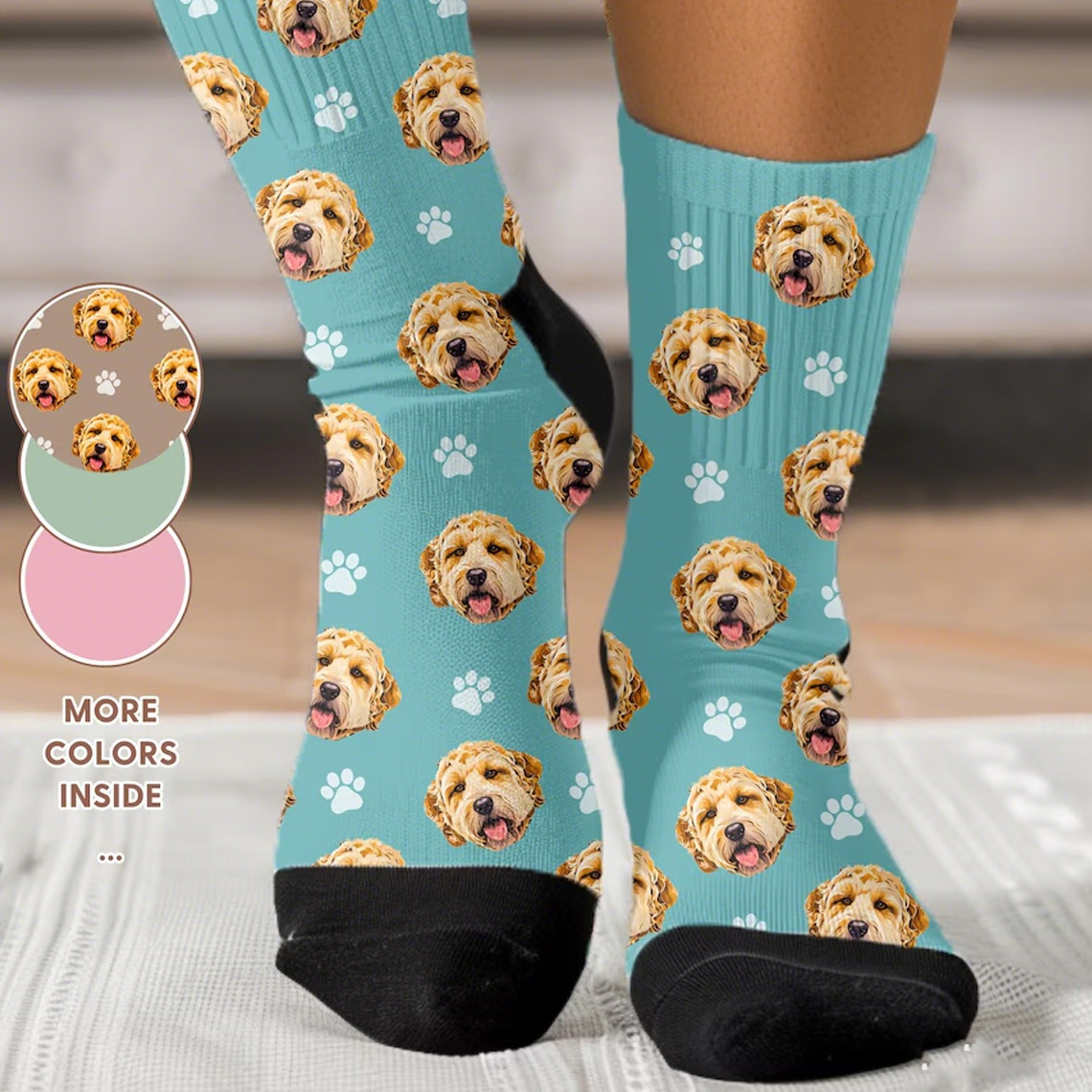 Celebrate the bond between you and your pet with these one-of-a-kind, modern pet socks that not only pays homage to your pet but seamlessly match any outfit. These pet socks featuring your best friend will effortlessly match any aesthetic and most definitely be a conversation starter. These tastefully designed cat socks can be purchased for you or an ideal gift for the dog or cat lovers, pet memorial gifts, or gifts for dog owners, and more! Your pet is designed on all-over print, crew length sock to keep your feet and calfs warm during those chilly days. The fleece lining inside the bottom of the sock feels like you're walking on a cloud.
