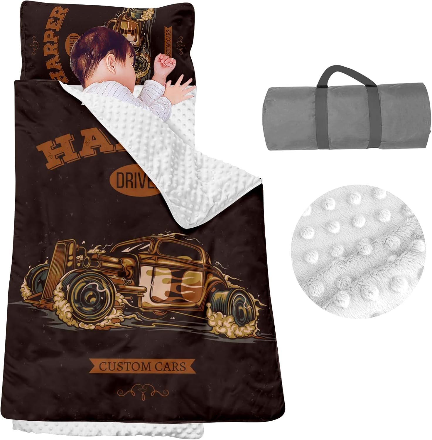 - Personalized Comfort for Little One: This custom toddler nap mat features a car series design and can be personalized with your child's name, making it perfect for daycare, preschool, and kindergarten.