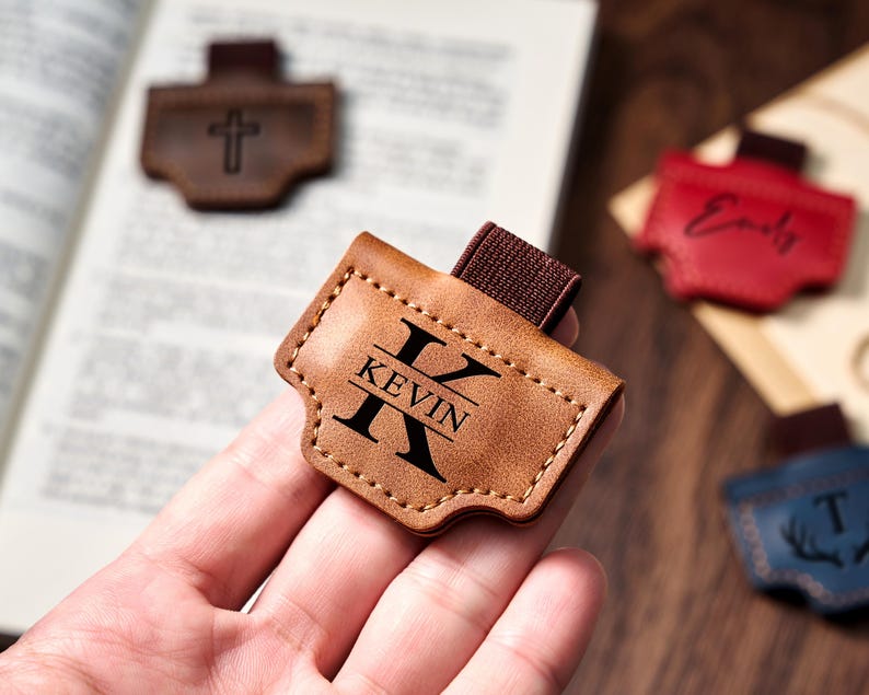 Crafted from durable leather with clean cut edges and detailed stitching, it offers a classic look and long-lasting quality. Add your engraved name, initials, or monogram to make it uniquely yours. The strong magnetic closure secures onto book pages without slipping or damaging the paper.