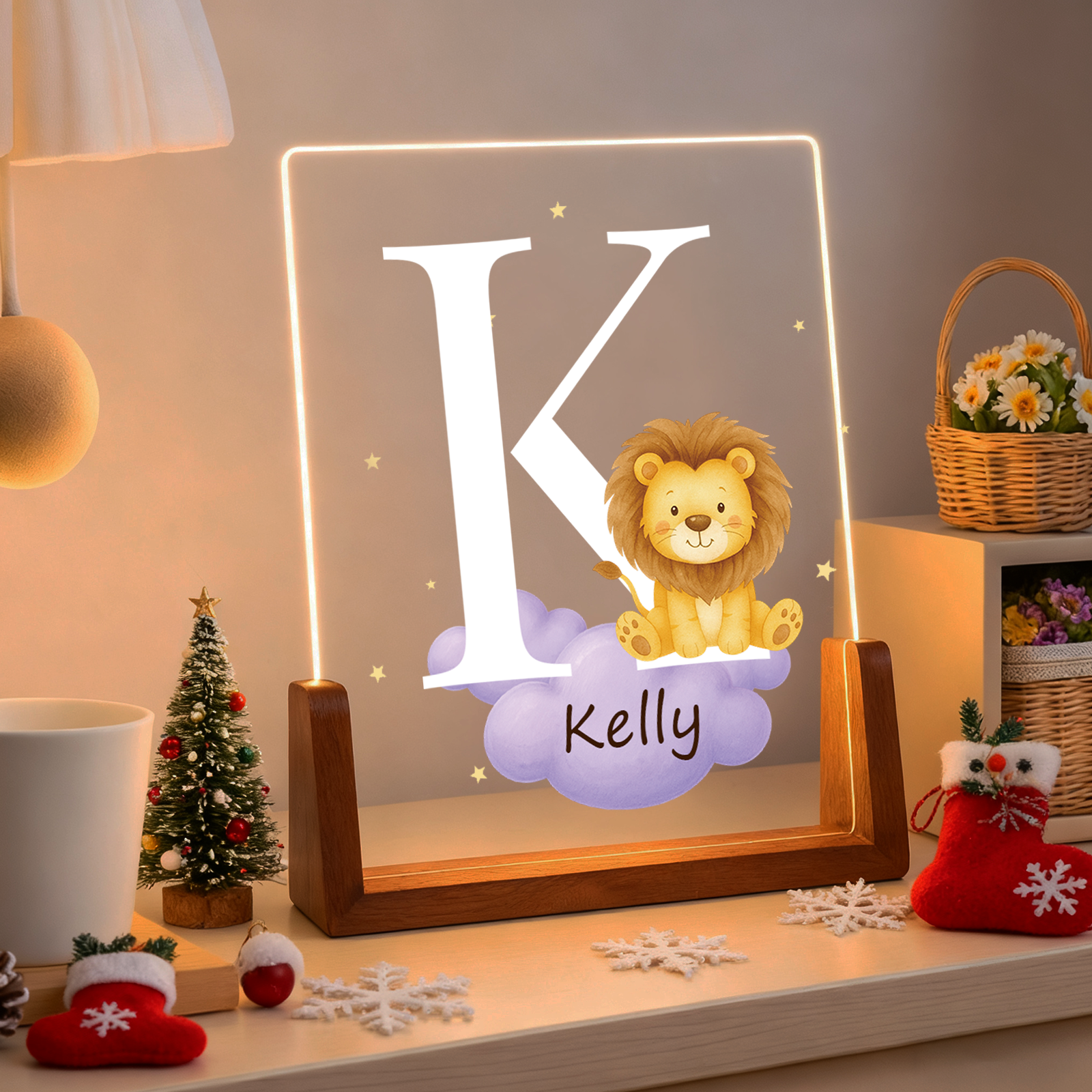 Personalized Cute Forest Animal Acrylic Cloud Star LED Night Light with Wooden Base Name and Initial Birthday Children's Day Gift for Boys Girls Baby Room Night Light Chirtmas Gift