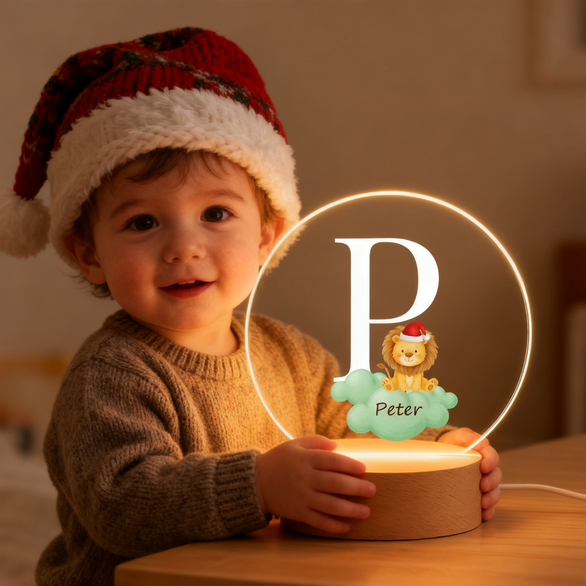 Personalized Fantasy Star Cloud Cute Forest Animal Initial Name LED Night Light with Wooden Base Nursery Decor Birthday Baby Shower Gift for New Mom Christmas Gift