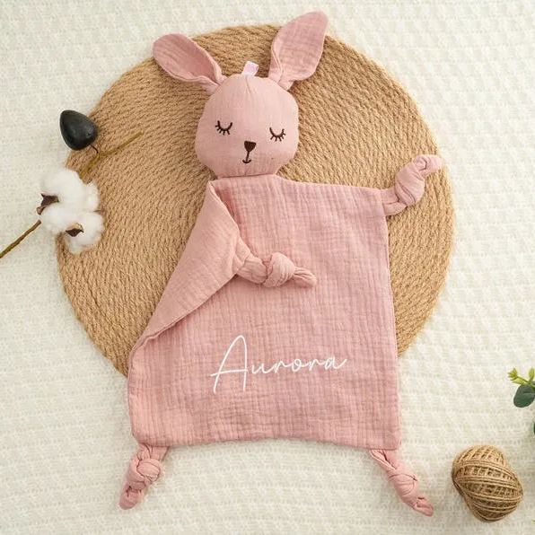 This embroidered personalized animal muslin comforter is made of 100% cotton, and the animal comforter is filled with safe PP cotton, which makes it elastic and feels good. The exquisite embroidery craftsmanship makes the comforter look very beautiful. And it is a great gift for your baby. Whether it is a newborn gift, a baby baptism gift, or a birthday gift, it is your perfect choice.