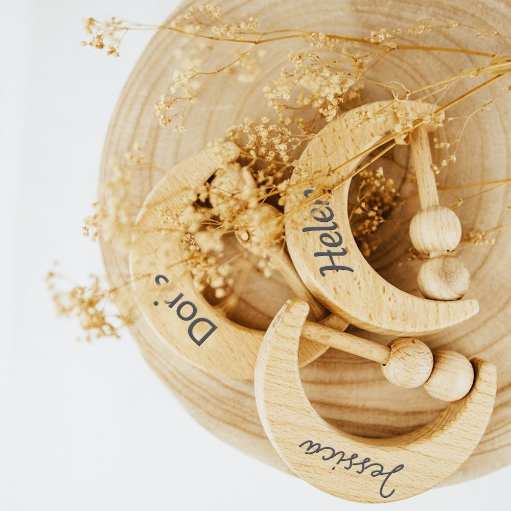 These adorable personalized wooden rattles are made from natural beech wood. Free of BPA, PVC, lead, phthalates, and latex. Wood is naturally antibacterial and antimicrobial, making it a great choice! The wood is in its natural state, meaning no oils, etc. are used on the wood, making it safe for babies.