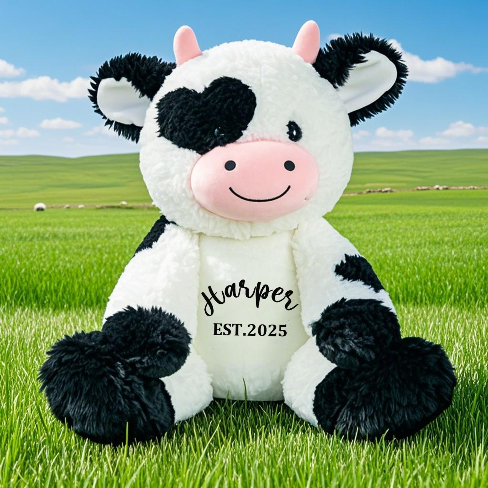 Personalized Design: Add a custom name, date, or special message to make this cow plush truly unique.