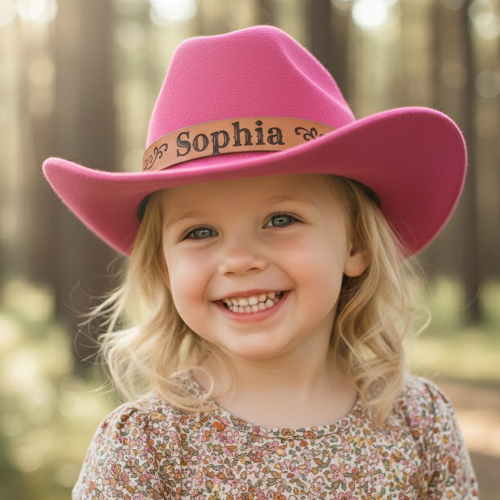 Our personalized cowboy hat is crafted from durable premium materials with a leather band for authentic western charm. Perfect for cowboy or cowgirl-themed parties, school events, rodeos, and family gatherings, it's available in sizes for babies, kids, and adults. The adjustable strap ensures a comfortable fit as your child grows, making it ideal for parent-child matching outfits.