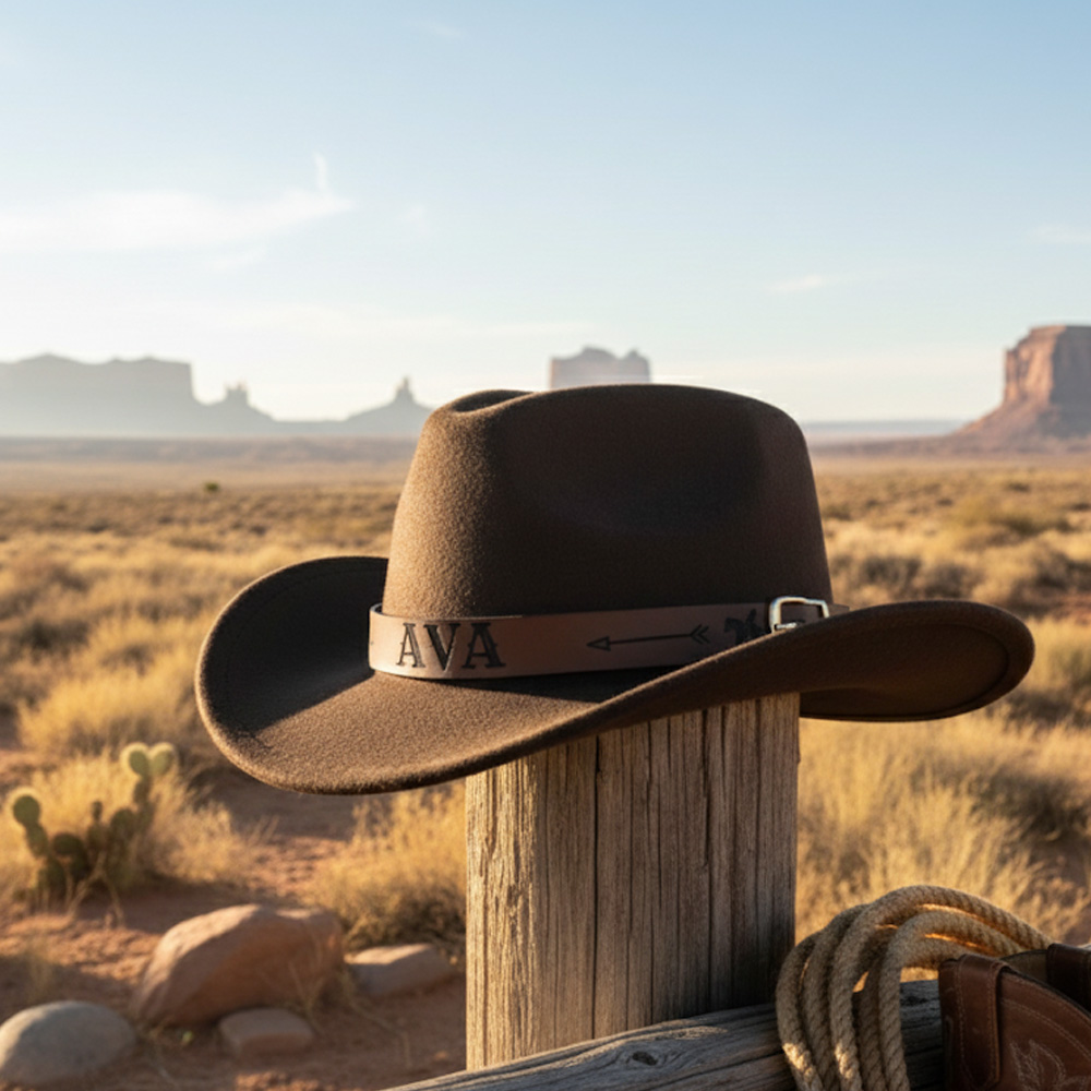 Our personalized cowboy hat is crafted from durable premium materials with a leather band for authentic western charm. Perfect for cowboy or cowgirl-themed parties, school events, rodeos, and family gatherings, it's available in sizes for babies, kids, and adults. The adjustable strap ensures a comfortable fit as your child grows, making it ideal for parent-child matching outfits.
