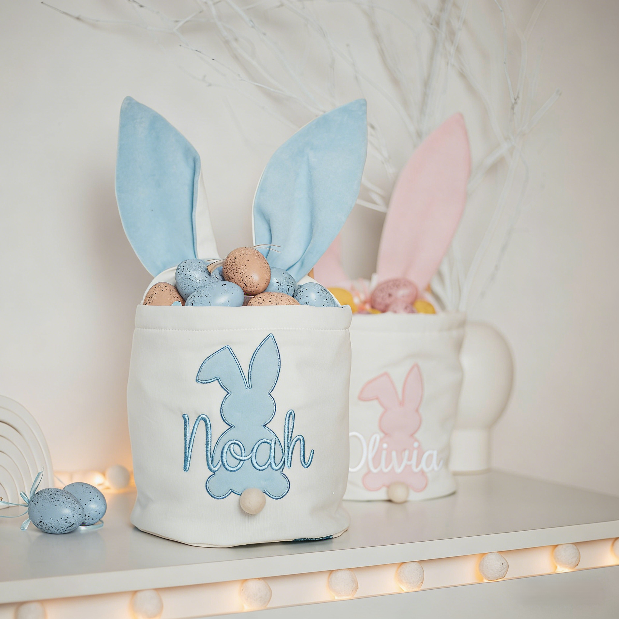 Easter baskets are the perfect gift for children, allowing them to fully enjoy the fun of the Easter egg hunt. The personalized design feature allows us to embroider
