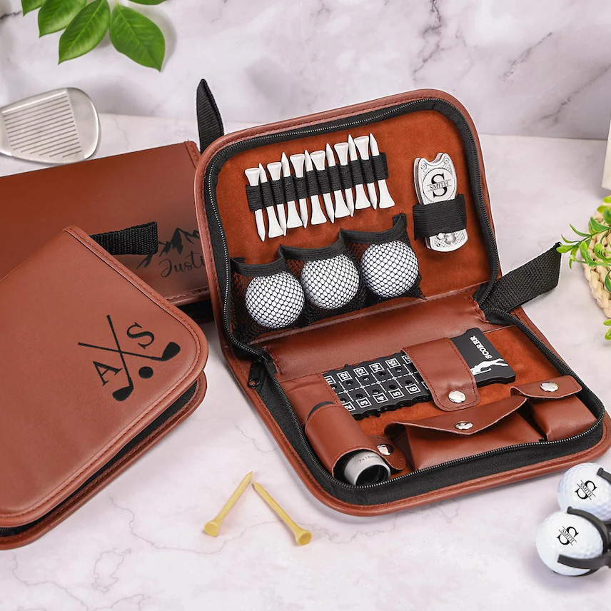 This golf accessory set can be customized with a name or text engraving, creating a unique and personal keepsake for golf lovers. Made with a leather case and thoughtfully selected accessories, it combines an upscale look with everyday functionality. Compact and easy to carry, it's suitable for regular practice, travel, or tournament days, and makes a memorable gift for golf enthusiasts of all levels.