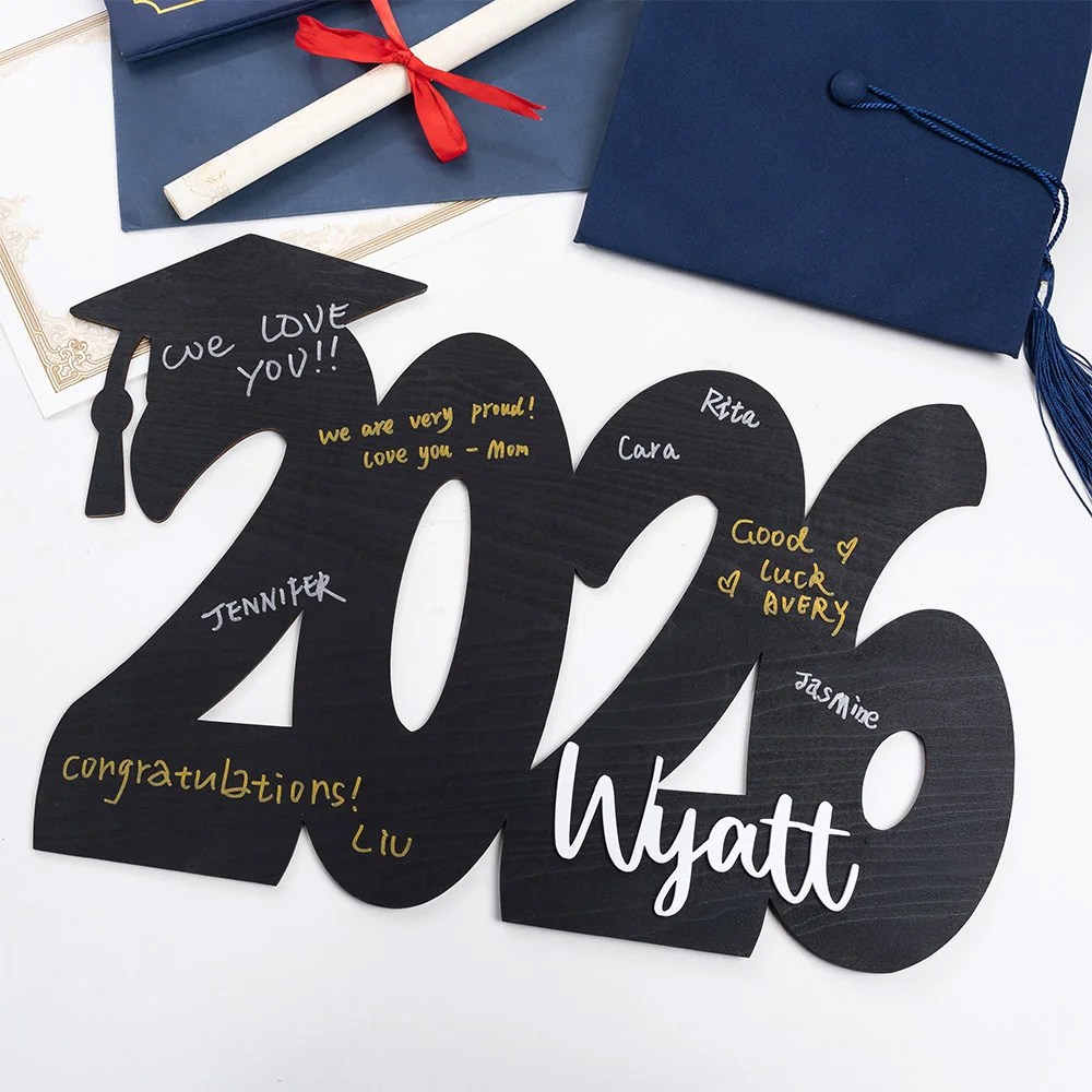 Make your graduation celebration even more memorable with this personalized wooden graduation cap guestbook sign. Designed with a custom name and graduation year, this decorative sign allows friends and family to leave messages, signatures, and well wishes, creating a meaningful keepsake for the graduate.