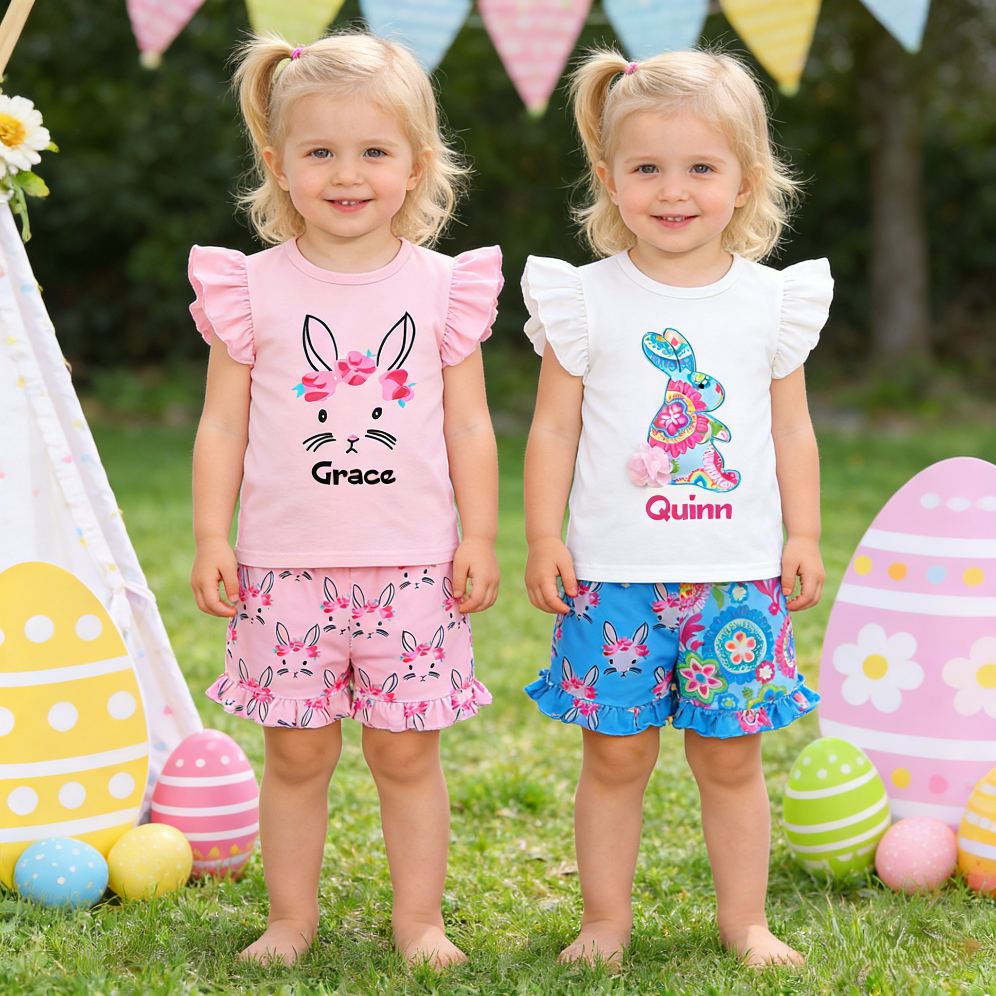 🐰 Create a sweet summer look just for your little princess! Two adorable bunny-themed sets, with fresh colors and cute details, will make your baby the center of