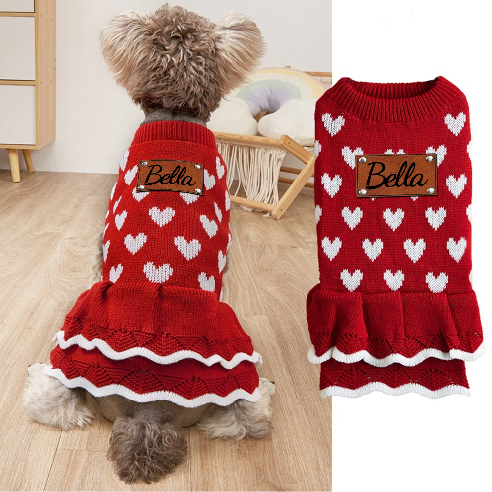 Keep your pet cute and cozy with this adorable sweater, featuring small heart-shaped patterns in three lovely colors: blue, red, and pink. ❤️💙💖 Perfect for fall and winter, it's made from super soft and comfortable fabric that your pet will love to wear every day. The pink and red options even come with an adorable dress detail! 🎀✨