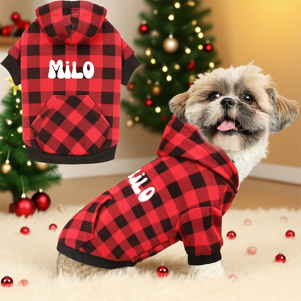 ✨🎄Make your pet both warm and eye-catching this Christmas! We've launched a Christmas plaid pet hooded coat with customizable names. The classic red plaid pattern is paired with festive elements for a stylish and appropriate look. Make your pet the most unique star of the Christmas party!✨🎄