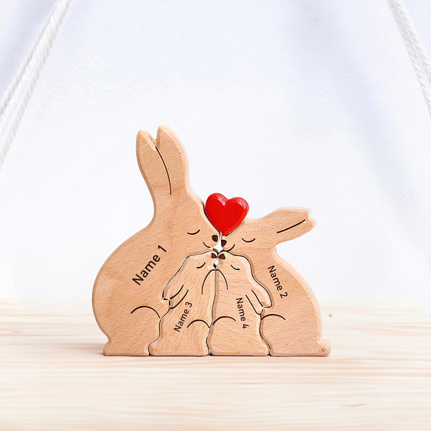 Personalized Wooden Bunny Puzzle with 2-10 Family Name - Custom Rabbit Puzzle for Mother, Gifts for Mother's Day, Easter Christmas Birthday, Hare Puzzle House Warming Gifts Ideas, Wooden Home Decor