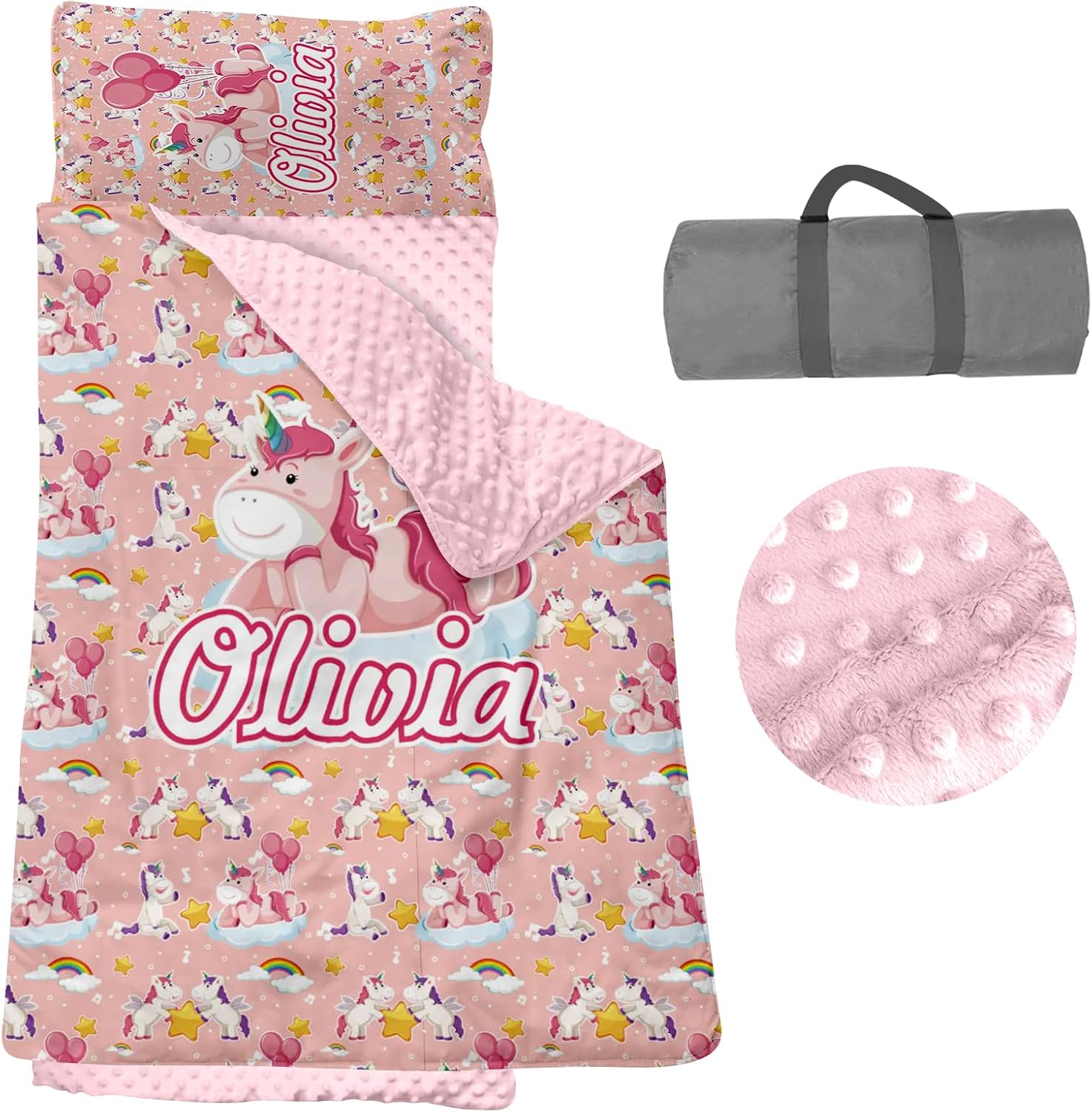 Toddler Nap Mat, Personalized Nap Mats for Daycare Preschool Kindergarten Nap Mat with Pillow and Blanket for Girls